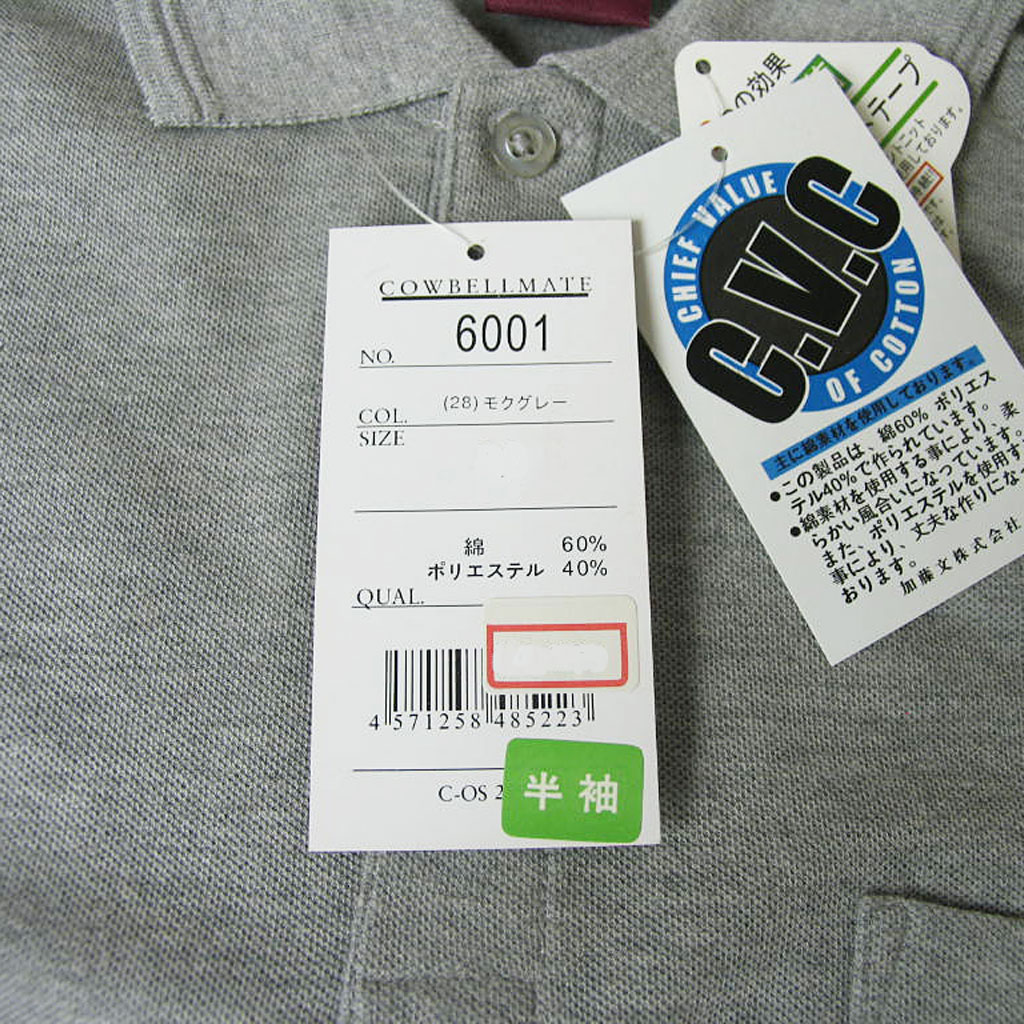 • COWBELLMATE ポロシャツ メンズ 春夏 半袖 鹿の子織り モクグレー 6002 S M L 4L