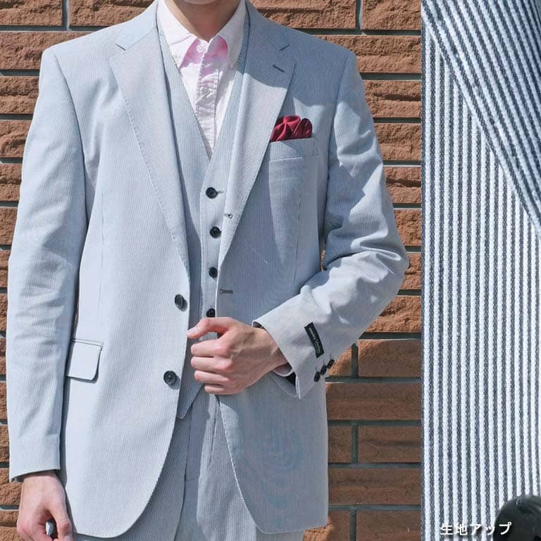 ★アメリカのファッションブランドstanley blacker (スタンリー・ブラッカー)の春夏スリーピースです。 (モデル着用サイズ:A7 ウエスト82cm) ★コードレーンのスリーピー...