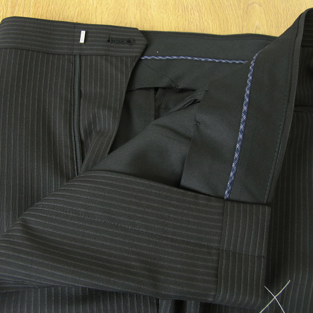 シワになりにくい素材を使用しております。 スラックスは長時間の使用や水濡れにも耐える、折り目が消えにくい加工がされています。 ◆カラー=ミディアムグレーのストライプ柄 ◆素材=毛50%/ポリエステル50%(裏地ポリエステル100%) ◆背抜き...