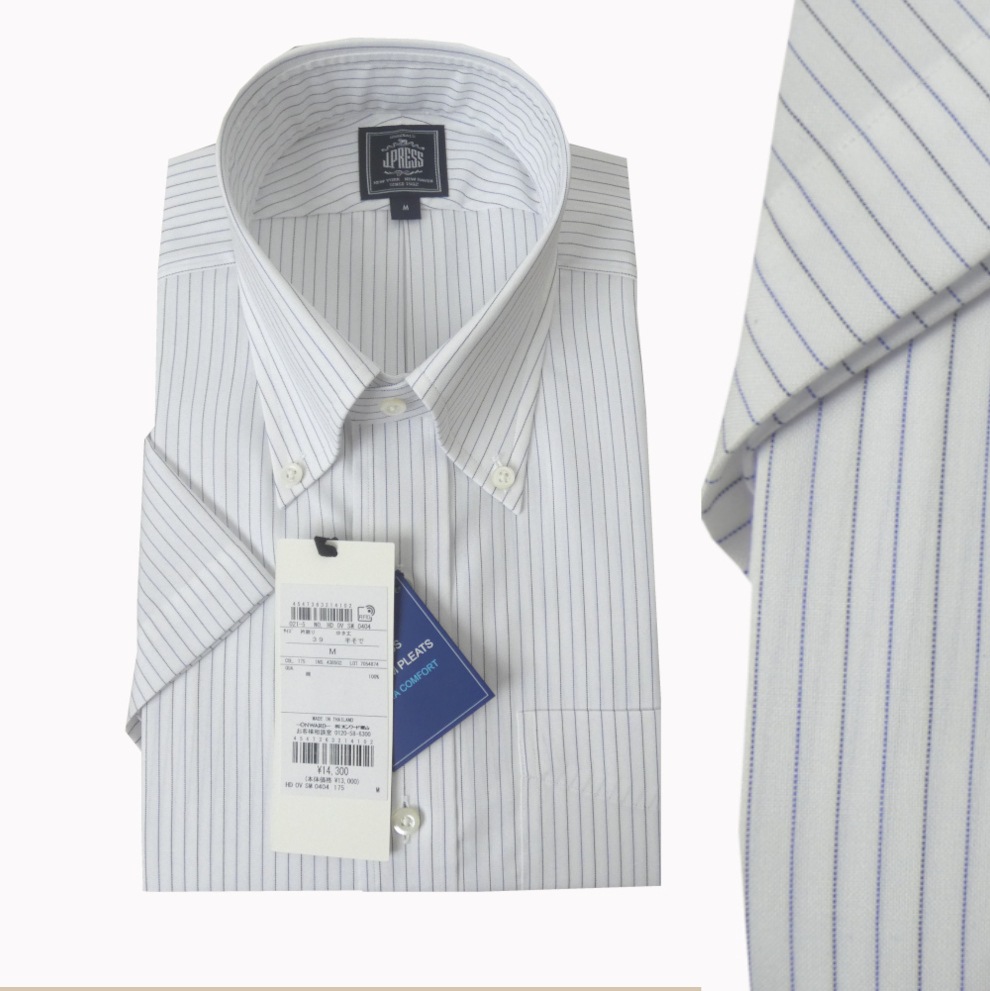• 【形態安定】ジェイプレス (J.PRESS) ボタンダウンシャツ メンズ 春夏 半袖 白地に青×黒 ピンストライプ 4175   S