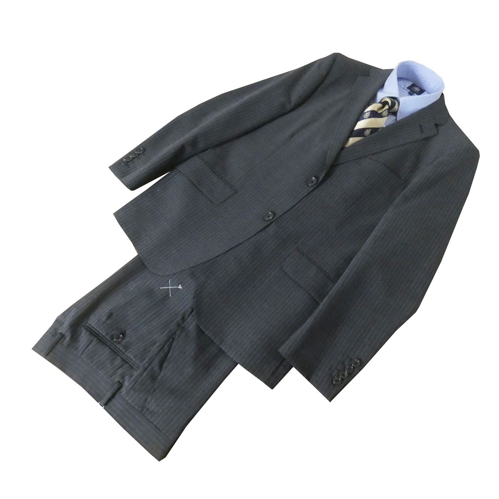 • スーツ メンズ 春夏秋 2パンツスーツ 2つボタン シングルスーツ ツーパンツ ダディコスタ(Dady Costa) ビジネススーツ ストライプ チャコールグレー 0023 A6サイズ