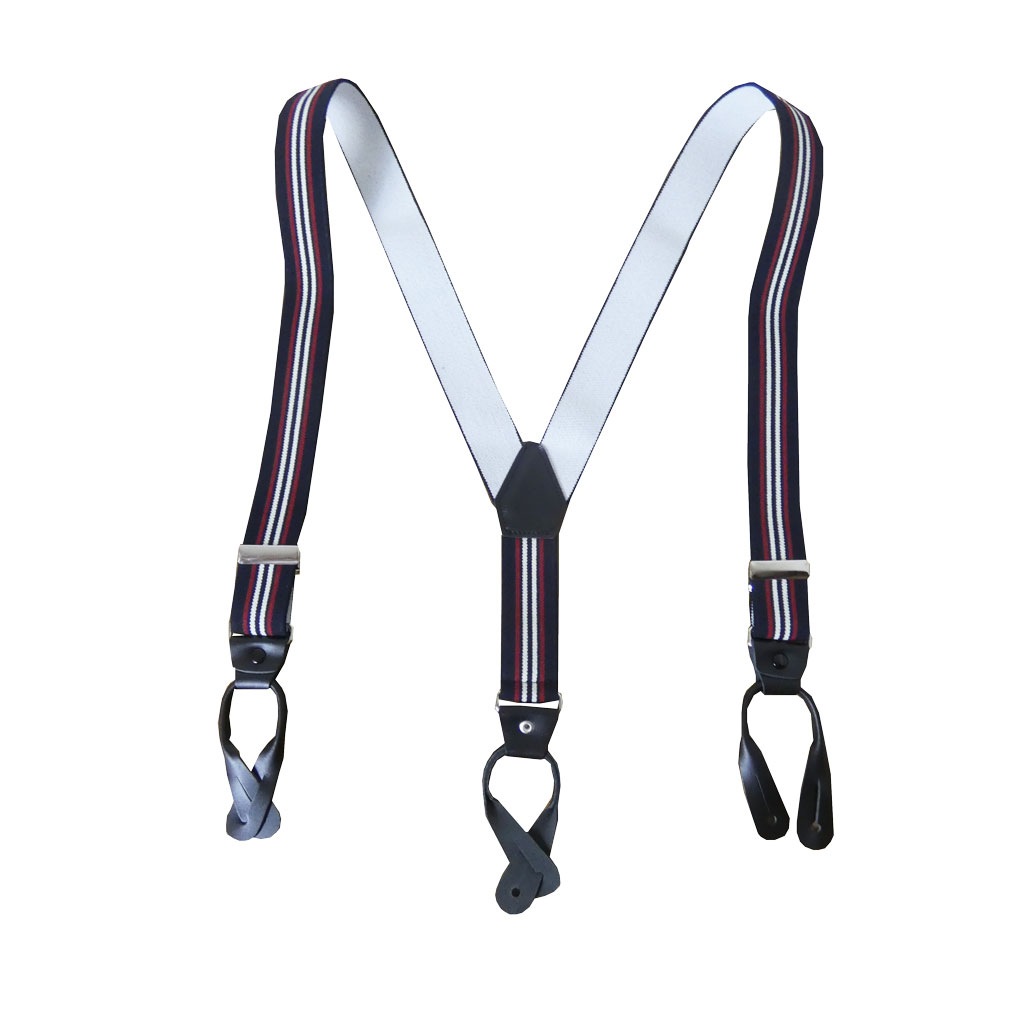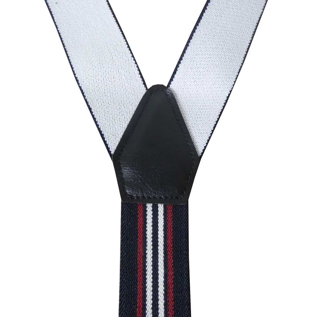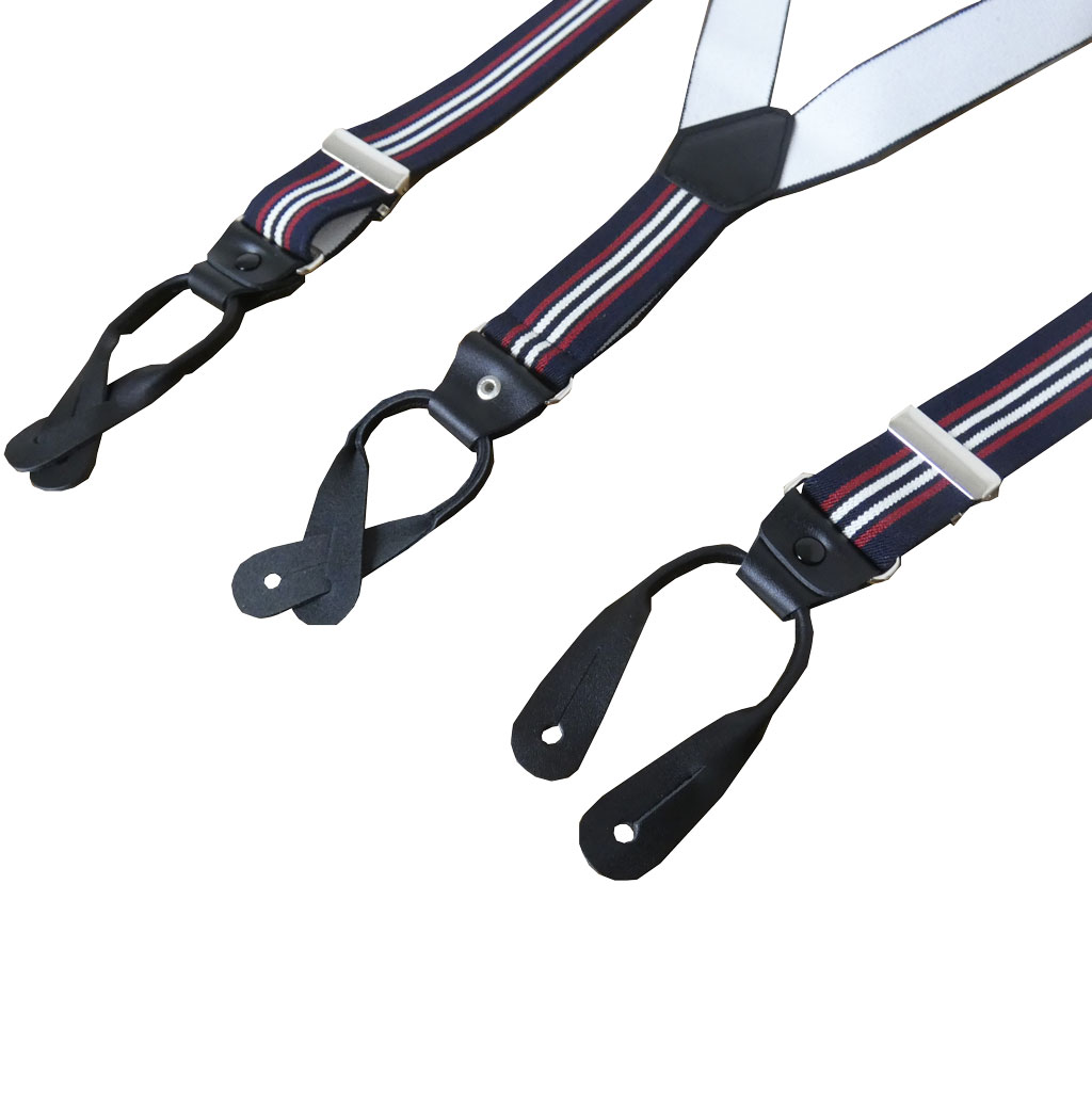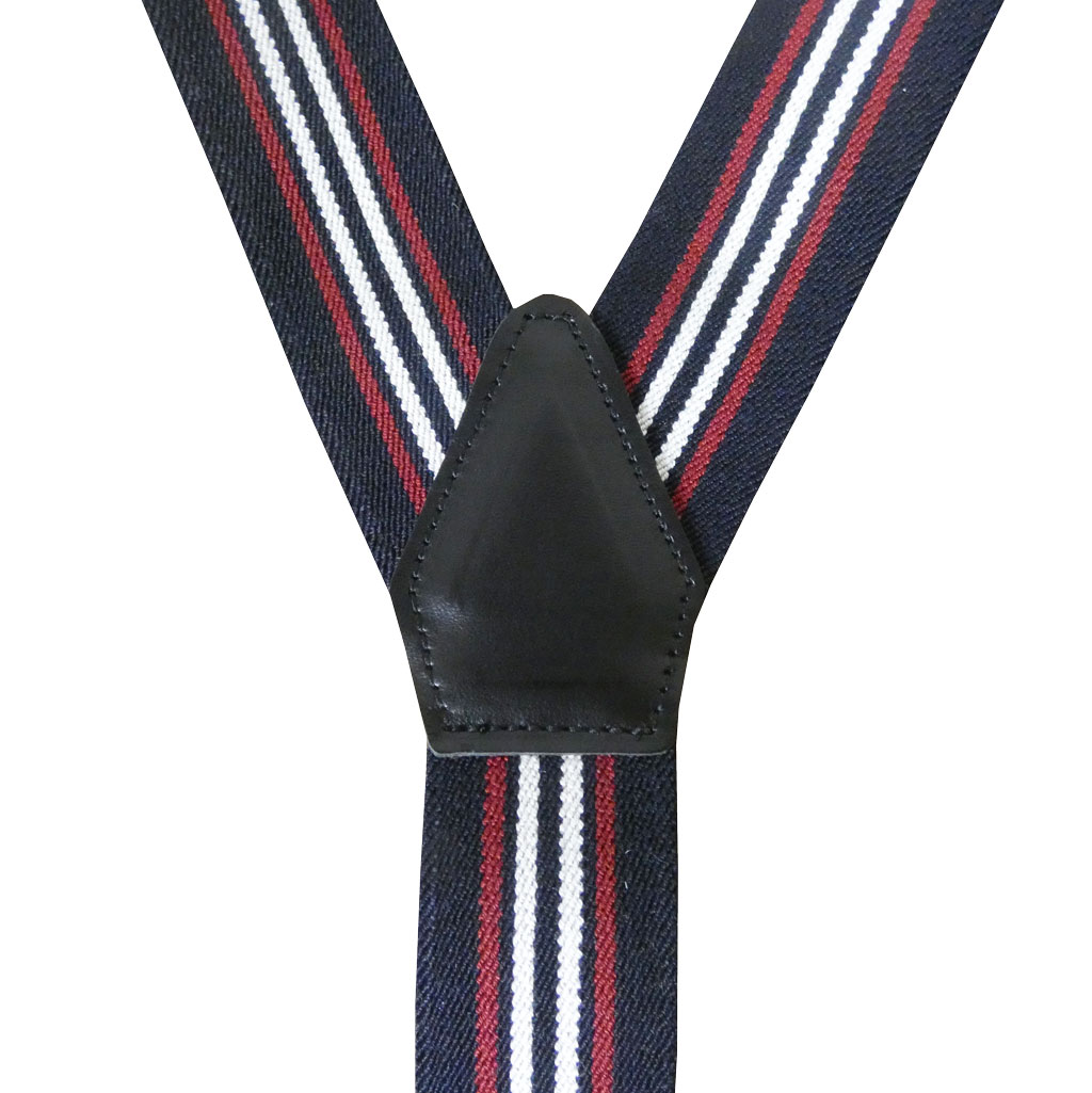 • サスペンダー メンズ Y型サスペンダー 35mm 本革 七々子 カシメボタン式 ゲバルト ストライプ 赤×紺×白 S15 M L