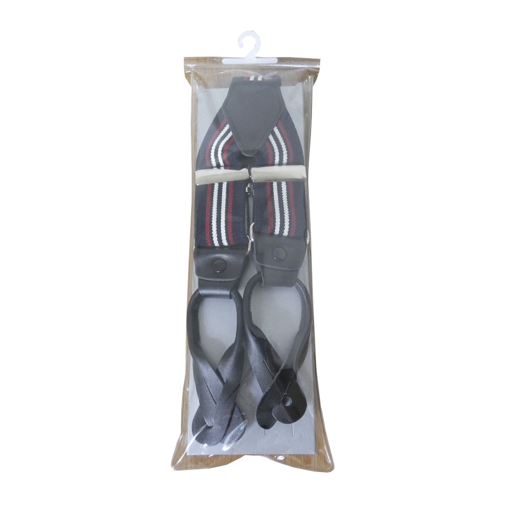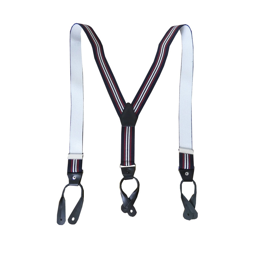 サスペンダー メンズ Y型サスペンダー 35mm 本革 七々子 カシメボタン式 ゲバルト ストライプ 赤×紺×白  S15    M L