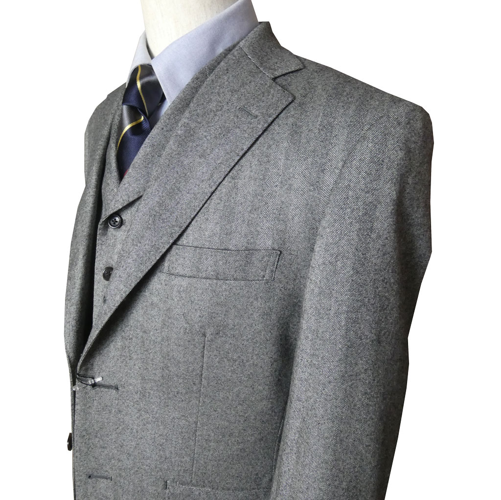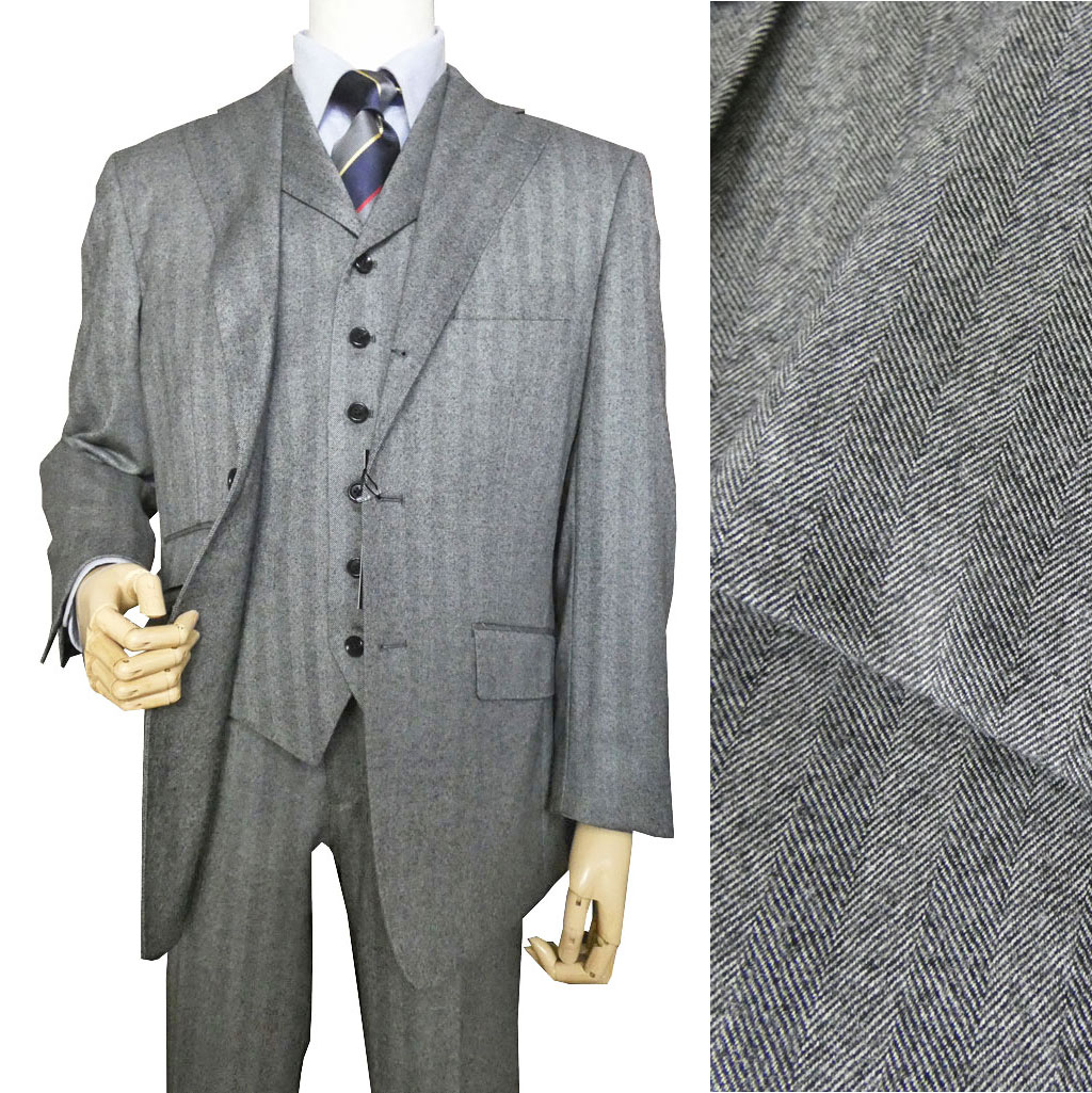• スーツ メンズ 秋冬春 スリーピース 3つボタン オックスフォードクラシック (OXFORD CLASSIC) 段返り三つボタン ビジネス ヘリンボーン ミディアムグレー 0115 A3 A4 A5 A6 A7 AB4 AB5 AB6 AB7 AB8 BB4 BB6 BB7 BB8